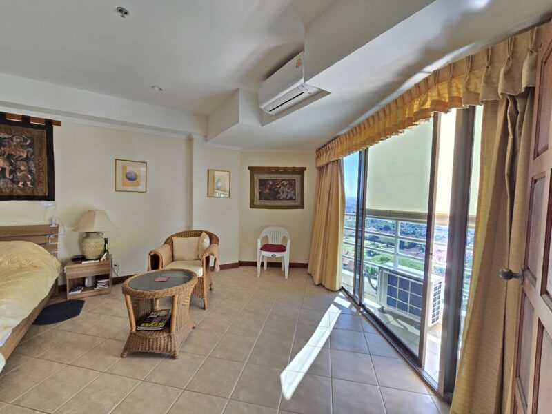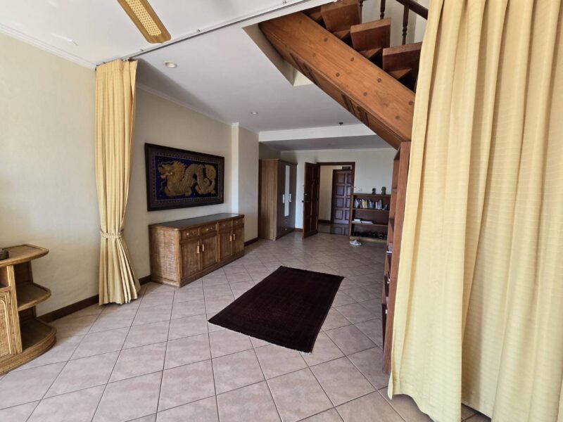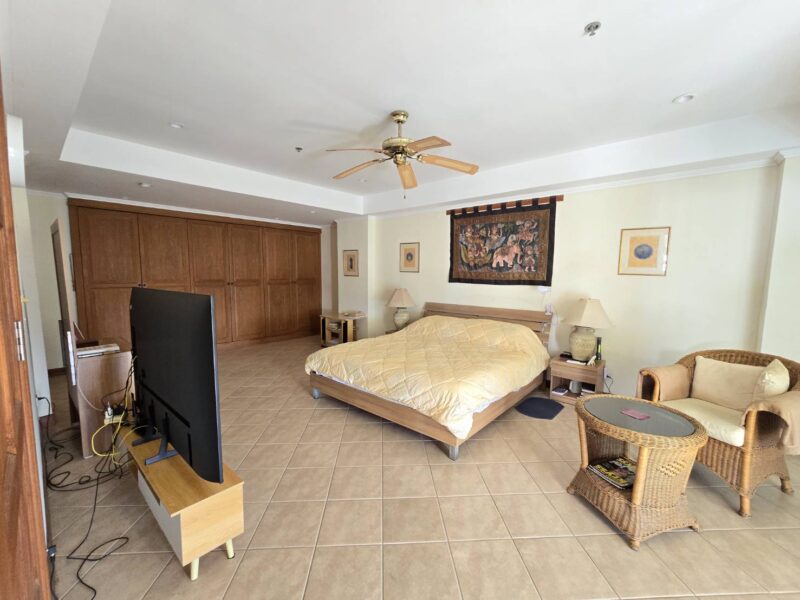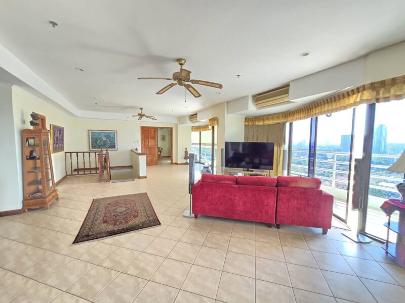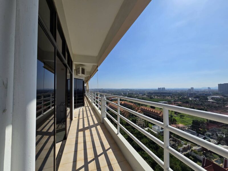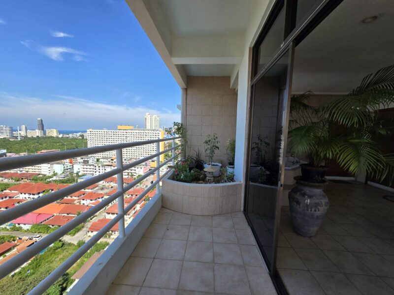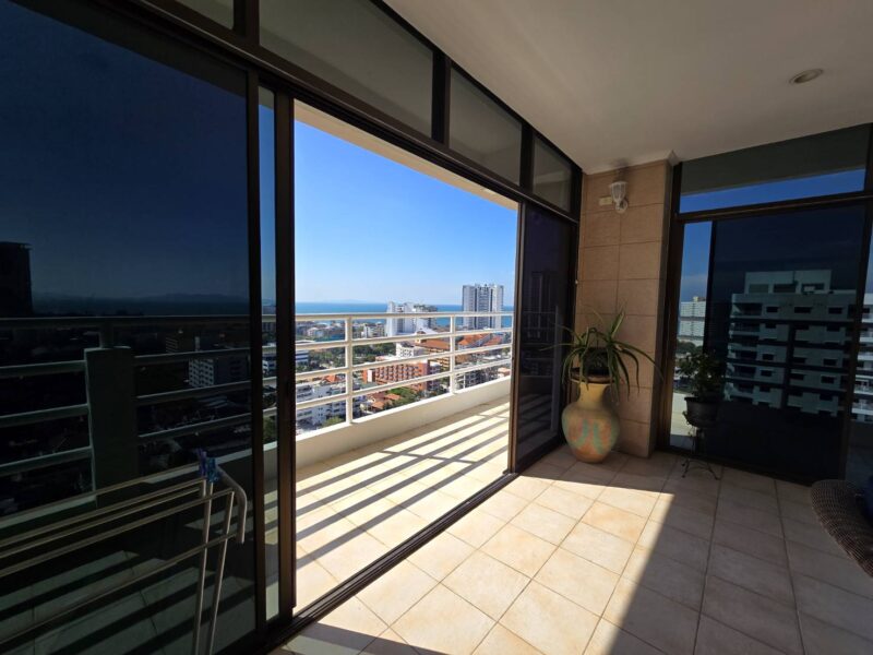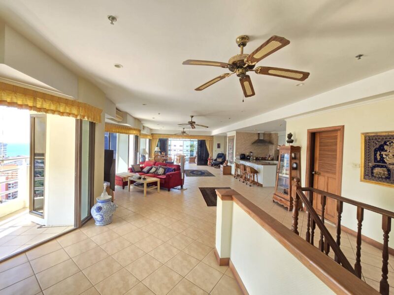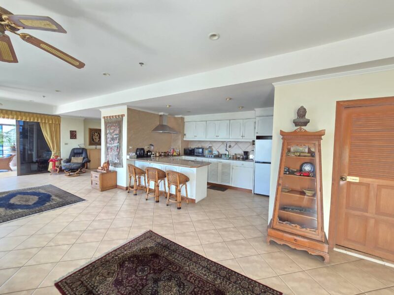 The View Talay 2B penthouse is a luxurious front-corner unit spanning 266 sq.m. with breathtaking panoramic views. It features two spacious bedrooms and two modern bathrooms, offering a high-end living experience. The unit is available under a foreign name, making it an excellent option for international buyers. Located in a prime area, it provides easy access to Jomtien Beach, shopping, dining, and entertainment. This rare penthouse is perfect for those seeking a spacious and elegant coastal residence.