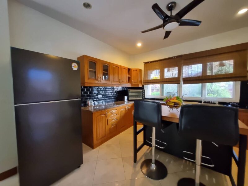 This well-maintained house is situated on a 400 sq.m. land plot, offering a spacious and comfortable living environment. It features four bedrooms, three bathrooms, and a separate laundry room, making it ideal for families or long-term residents. The property includes private parking with an automatic remote-control gate, ensuring security and convenience. Its prime location provides easy access to an international school, Makro, and a large local market, while still being in a quiet and peaceful neighborhood. The house is available for sale at 7.85 million THB under a Thai company name or for rent at 60,000 THB per month