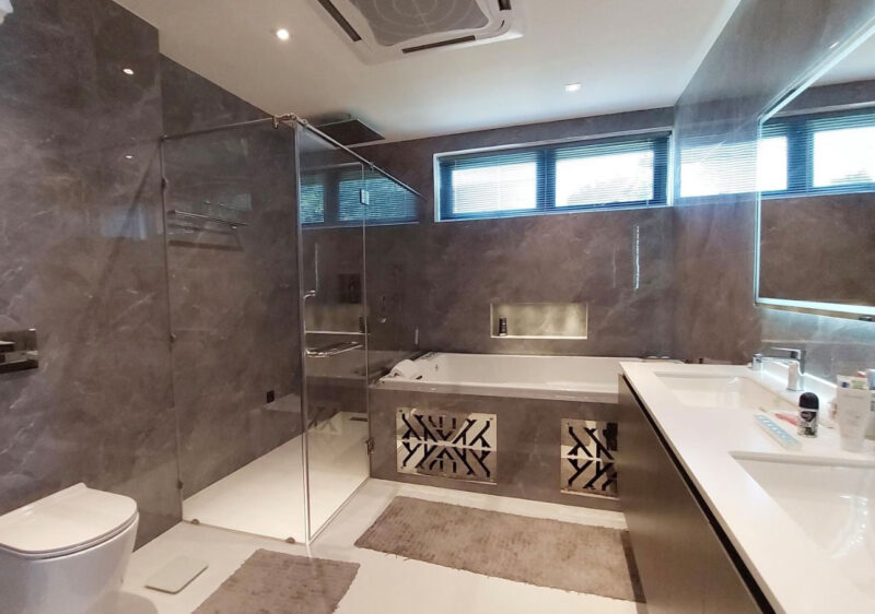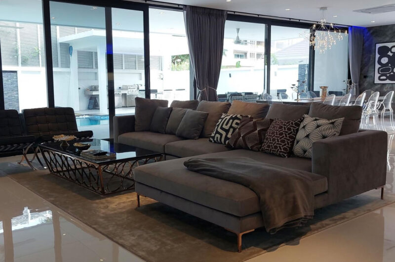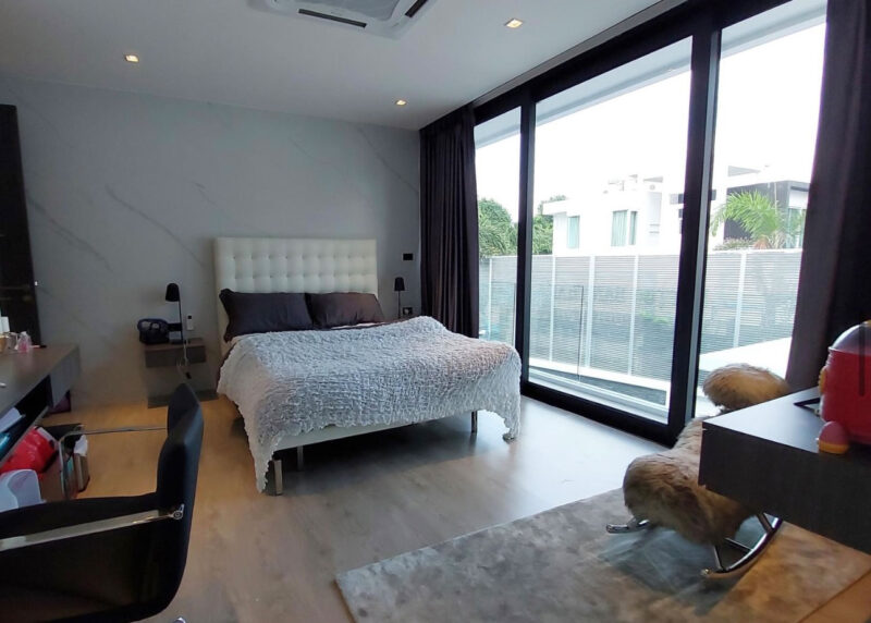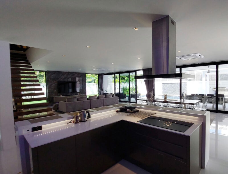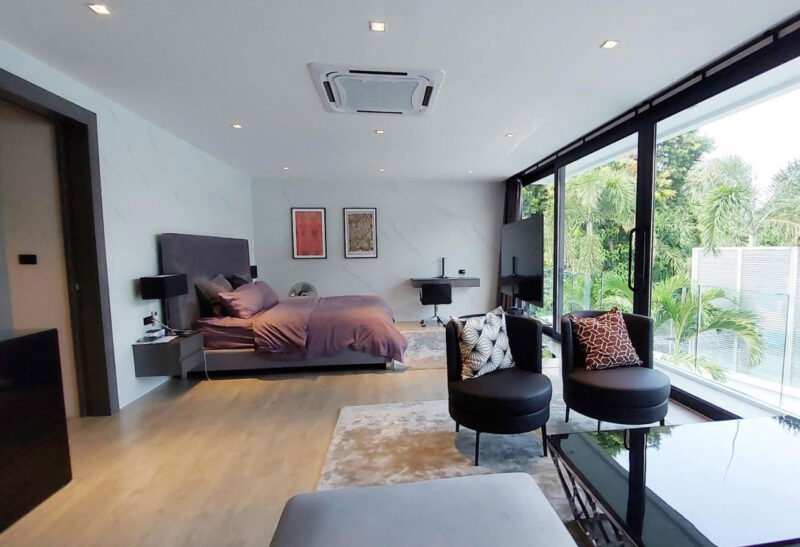This luxurious 750 sqm house in Pattaya Pratumnak sits on 153 TW (612 sqm) of land and comes fully furnished, ready to move in. It features double-glazed windows/doors, a private lift, a high-end European kitchen, and an outdoor stainless steel kitchen. The property boasts underground parking with a storage room, a swimming pool with a jacuzzi, and a high basement bar with pool-view windows. For entertainment, enjoy a cinema room, a fitness room with a sauna and shower, and a dedicated office space. Comfort is ensured with Daikin cassette air conditioning throughout and a master bathroom featuring a jacuzzi and aircon. Now available for 70.8 million THB, discounted from 88.5 million THB.