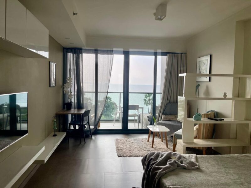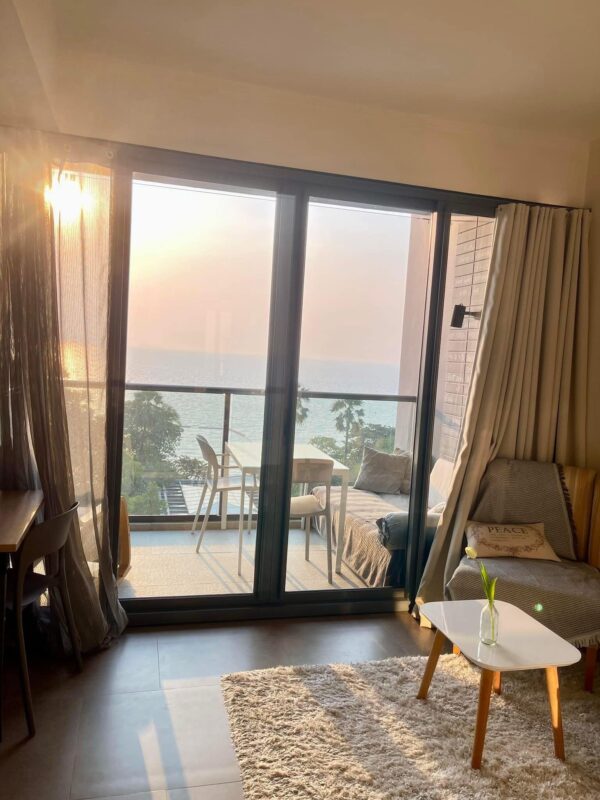 This is a 38 square meter studio room on the 6th floor with a sea view and Koh Larn view at Zire Wongamat. The room is fully furnished with a bed, TV, sofa, air conditioner, water heater. Zire Wongamat is a luxury condominium on Wongamat Beach. It has many facilities such as a swimming pool, fitness center, garden, sauna, steam room, 24-hour security, parking lot, and Zire Wongamat is located in Na Kluea, North Pattaya. It is conveniently located near Terminal 21, Bangkok Pattaya Hospital, Sukhumvit Road, Big C North Pattaya, Lan Pho Fishing Market, Central Festival Shopping Mall, Royal Garden, Pattaya International Hospital, Walking Street Soi 6.