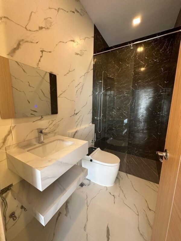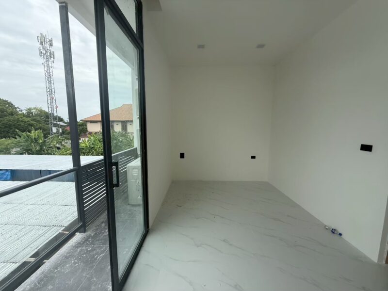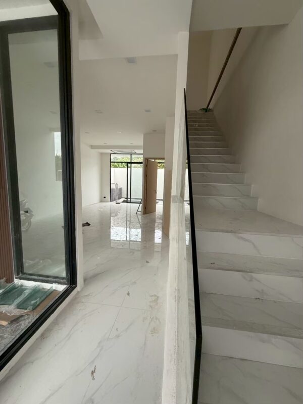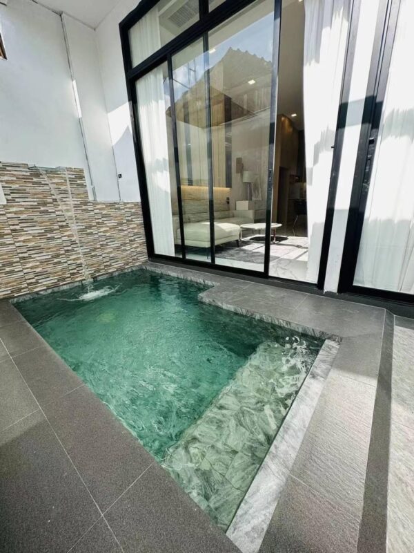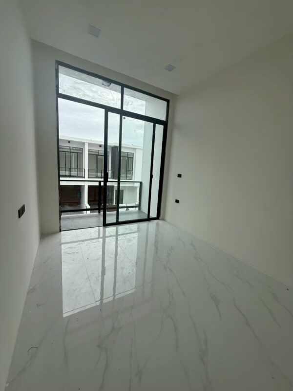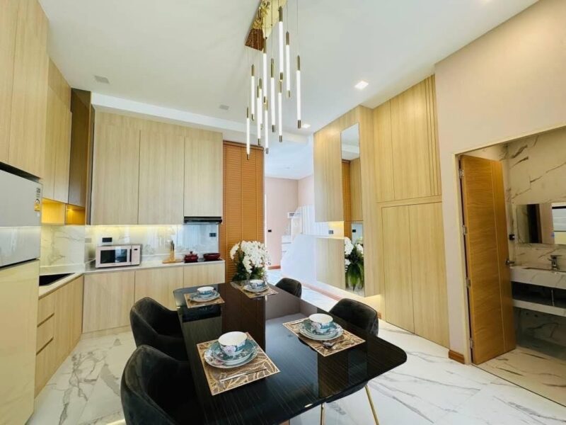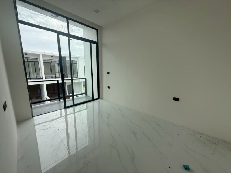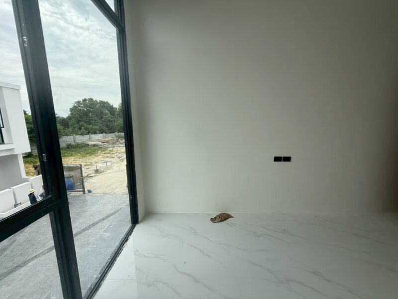 This newly built two-story vacation home offers modern comfort with four bedrooms and three bathrooms. Newly Built Home | Unfurnished | Prime Location With a spacious 180 sqm usable area on a 24 sqw plot, the house features high 3.25-meter ceilings for an airy atmosphere. A private swimming pool is included within the property, providing a relaxing retreat. The residence is unfurnished, allowing for personalized interior design. Residents also enjoy shared facilities such as a communal pool, fitness center, children’s playroom, and co-working space. A clubhouse enhances the community experience with additional amenities. The property is secured with 24-hour security, ensuring safety and peace of mind.