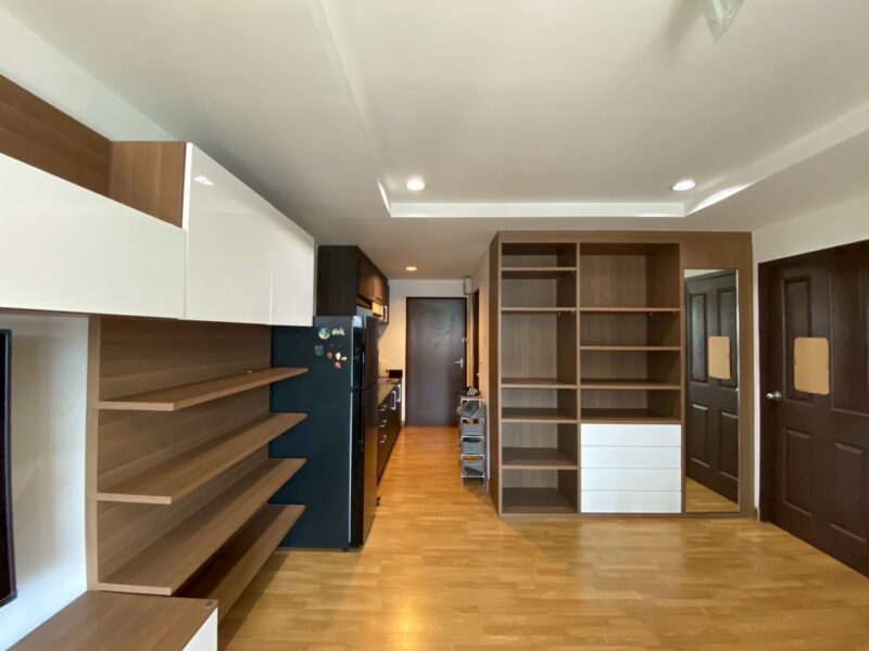 Presenting a well-appointed 1-bedroom, 1-bathroom condominium at The Blue Residence in East Pattaya, now available for sale at ฿3,000,000. This spacious unit spans 54.65 square meters and is fully furnished, featuring three air conditioning units to ensure comfort throughout.​