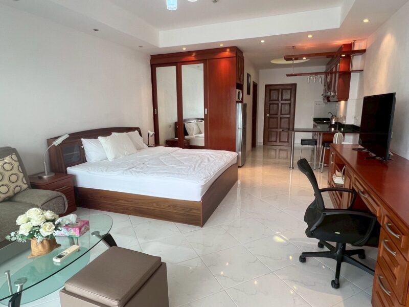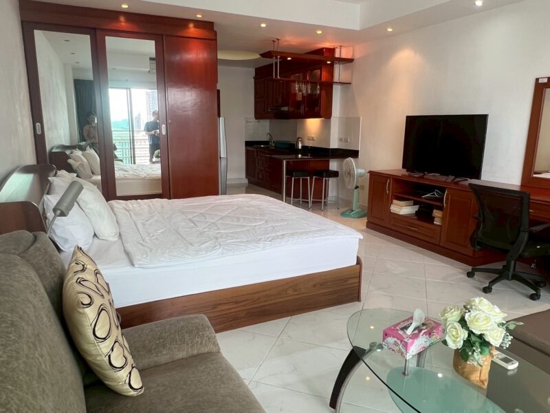 This beautiful 48 sq.m. condo is located on the 22nd floor of View Talay 5C, offering breathtaking sea views from its high-floor balcony. Situated in a prime beachfront location in Jomtien, it’s just steps from the beach, restaurants, cafes, and local transport. The unit is fully furnished and designed for comfortable long-term or holiday living. Residents enjoy excellent amenities including a large swimming pool, 24-hour security, covered parking, and on-site shops and restaurants. Its high floor provides not only great views but also added privacy and a peaceful atmosphere. Available for rent at just 18,000 THB per month, making it a fantastic value for beachfront living.