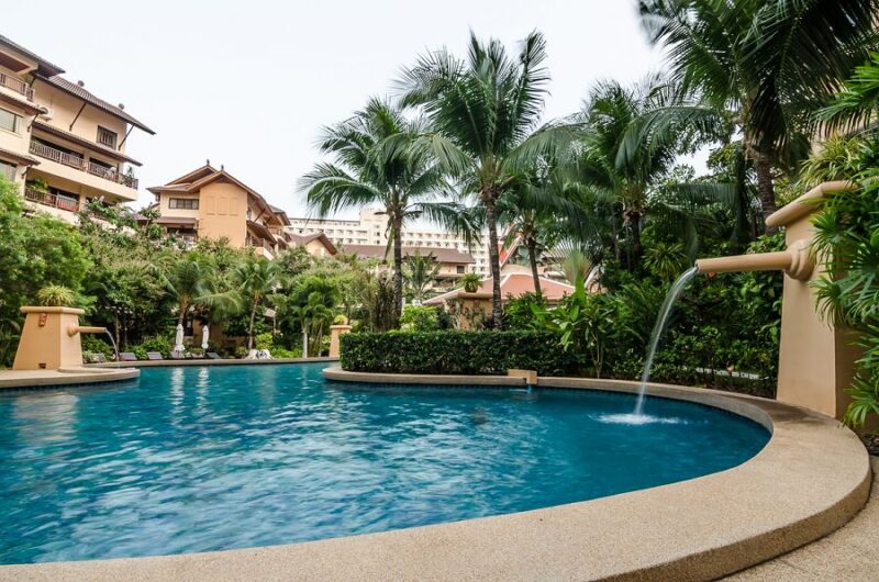This beautifully renovated 64 sq.m. studio condo is located in the exotic Chateau Dale ThaBali Condominium Resort, just minutes from Jomtien Beach. The unit features an open layout with a large living area, updated kitchen, bathroom, and a sleeping space tucked into a private corner for added comfort. A major highlight is the spacious private balcony overlooking the lush tropical garden and pool, perfectly positioned to avoid afternoon heat, making the unit cool and relaxing throughout the day. Renovations include a new kitchen, bathroom upgrades (2023), fresh paint, modern lighting, ceiling fans, a new washing machine, and smart furnishings for a move-in-ready experience. Residents enjoy top-tier amenities such as a large tropical swimming pool, parking, fiber internet, security, CCTV, a beauty center, and more. The building is known for its peaceful, resort-style atmosphere—ideal for those seeking both comfort and privacy. This condo is a great option for buyers looking for a modern, stylish unit in a prime Jomtien location.