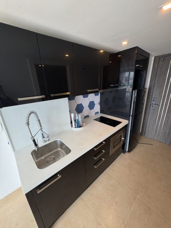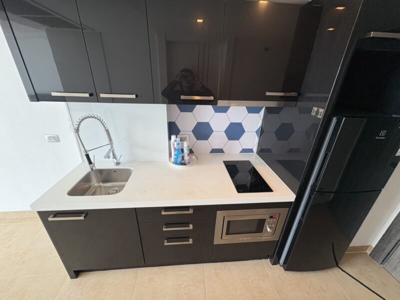 This modern 30 sqm studio is fully furnished with a sleek design and high-quality finishing.