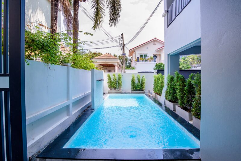 This modern and stylish pool villa is located in a prime area, offered at 11.9 million Baht. The property features 4 bedrooms and 4 bathrooms, providing ample space for family living or guests.