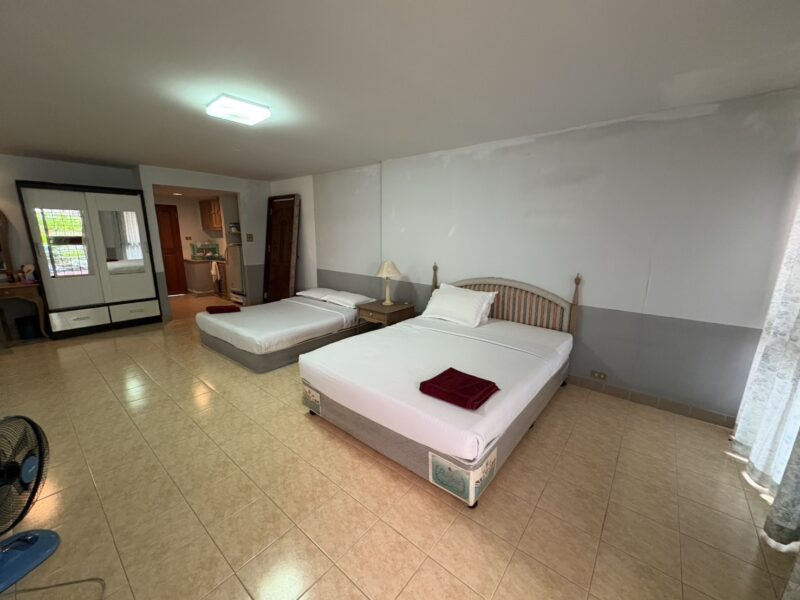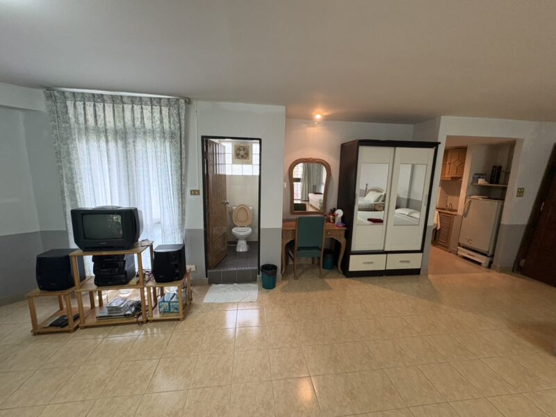 The unit offers a generous size of 85 sqm, providing more space than a standard studio. It is designed as a studio with 2 bathrooms, giving extra convenience for residents or guests. The layout is open and versatile, suitable for personal living or investment purposes. Its location is highly attractive, just a minute’s walk to Jomtien Beach. Shops, cafés, and restaurants are all within easy walking distance.