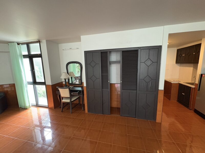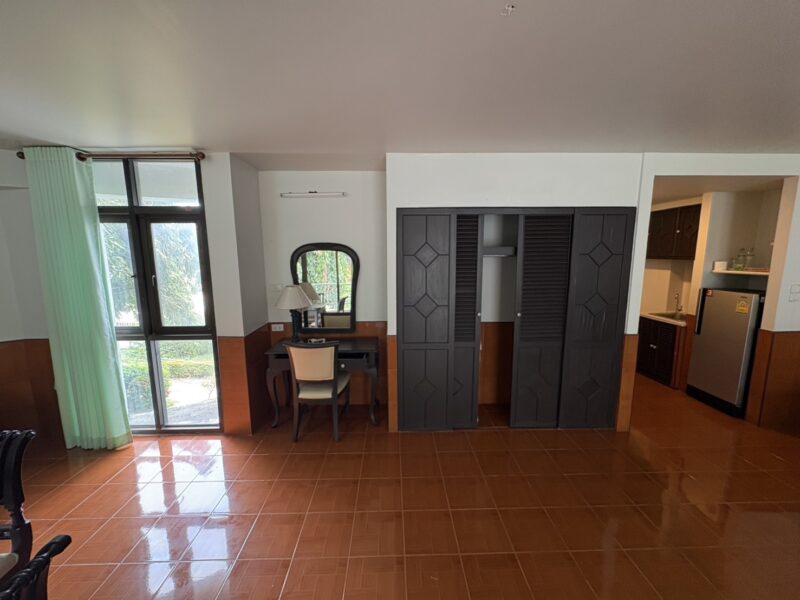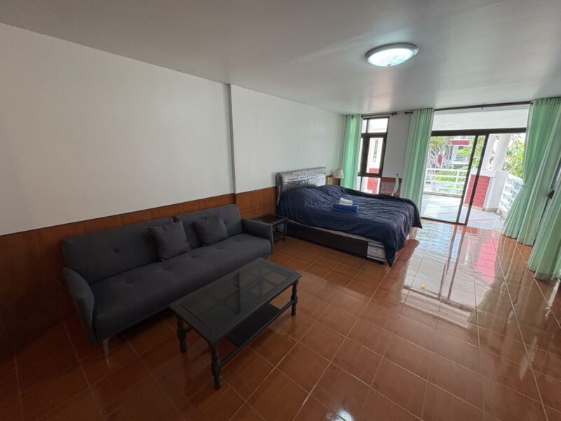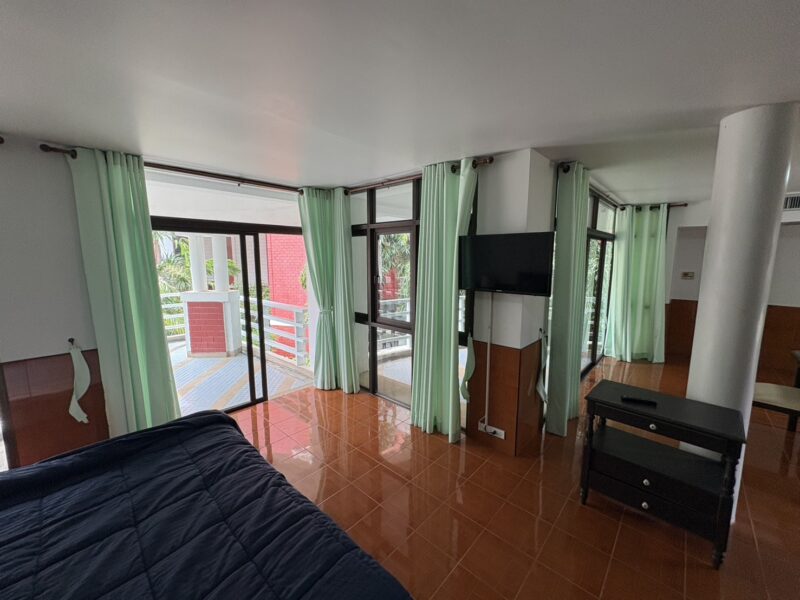 This spacious studio unit offers 84 sqm of living space, much larger than a standard studio. It includes 1 bathroom and a well-planned layout that can be styled to suit personal needs. The unit comes with 2 balconies, providing extra outdoor living space. From the balconies, residents can enjoy a relaxing pool view in a quiet environment. The project is only a minute’s walk to Jomtien Beach, offering easy access to the sea. Shops, cafés, and restaurants are all nearby, making daily life very convenient.