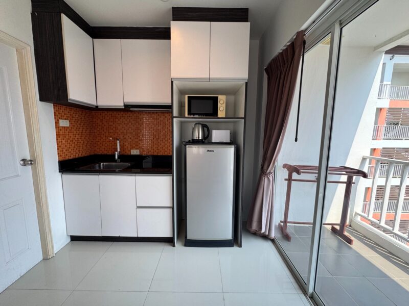 This stylish studio corner condo is located in the popular Pratumnak area. The unit offers 38 sqm of living space, fully furnished and ready to move in. It includes a kitchenette, a modern bathroom with shower, and air conditioning for comfort. A private balcony provides a pleasant pool view, perfect for relaxation.