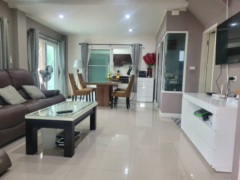 There is ample parking space and a large outdoor area perfect for relaxation or entertaining. Located in Tungklom-Tanman, Nongprue, the property is close to Phoenix Golf Club and only a short drive from central Pattaya. This home offers a peaceful atmosphere with easy access to main roads and local amenities. It’s available for rent at 35,000 Baht per month, providing both luxury and space in a serene setting