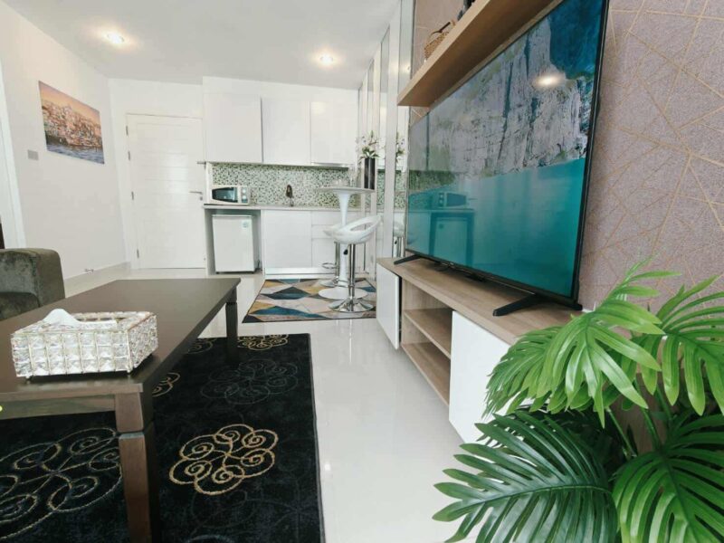 Facilities – Reception – Passenger elevator – Swimming pool and water slide – Garden – Playground – Fitness – Free Wi-Fi Internet in a common area – On-site restaurants – Parking space – Jacuzzi tub – Sauna – Shuttle Bus to Jomtien Beach – 24-hour security system The project’s CAM fee is 39 baht per square meter per month.