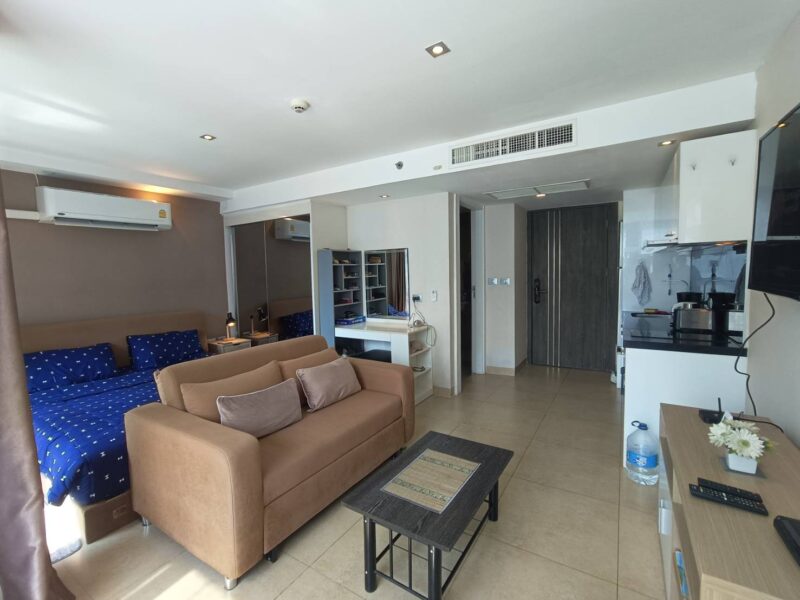 Sell price 2,590,000 Baht with Thai quota, the cost on transfer date is 50/50, Studio room size is 34 Sq.meters with pool view, fully furnished, hight floor