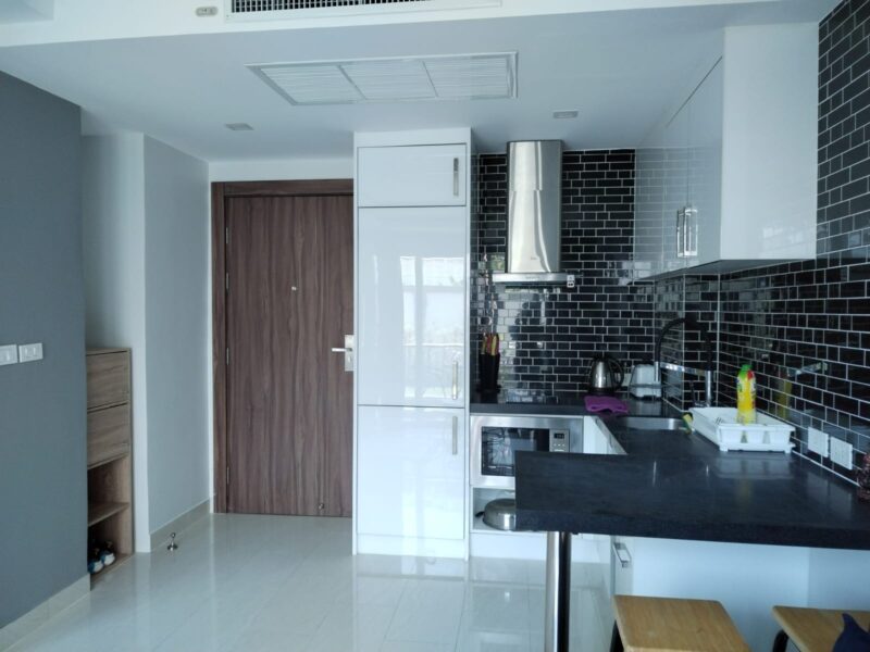 The room offers a spacious living area of 46 square meters with a well-planned layout. It features a city view, providing a bright and open atmosphere. The unit comes fully furnished and is ready for comfortable living. The interior is well maintained and suitable for short-term stays. This room is offered for short-term rental only. Availability needs to be checked prior to confirmation. The rental price is 24,000 Baht per month. Grand Avenue is a popular condominium with quality facilities and a pleasant environment.