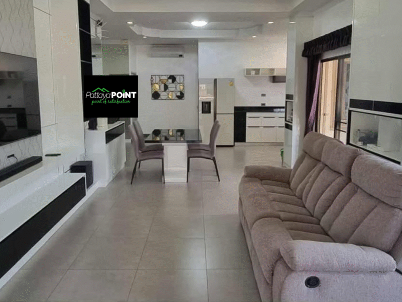 The property is held under a company name, making it suitable for foreign buyers. The house is vacant and ready for a quick transfer, with maintenance fees of 12,000 THB per year and transfer tax shared 50/50.