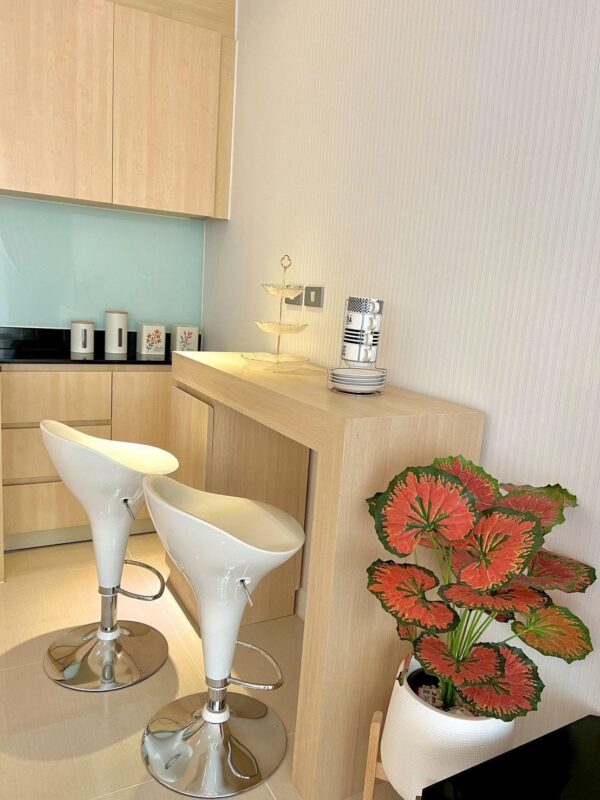 The living area is bright and airy, creating a relaxing atmosphere. Both bedrooms are generously sized with quality furnishings. The condo is in excellent condition and ready to move in.