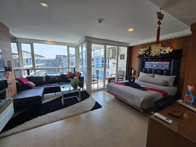 This studio unit at Centara is available for rent and offers a comfortable and practical living space. The unit features a pleasant pool view, creating a relaxing and enjoyable atmosphere. It is well designed with an open layout, making the space feel bright and functional.