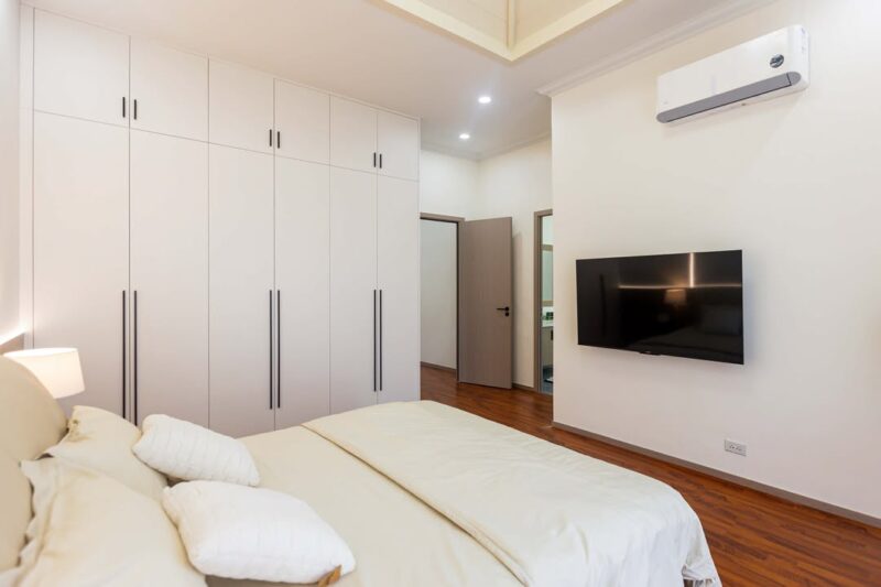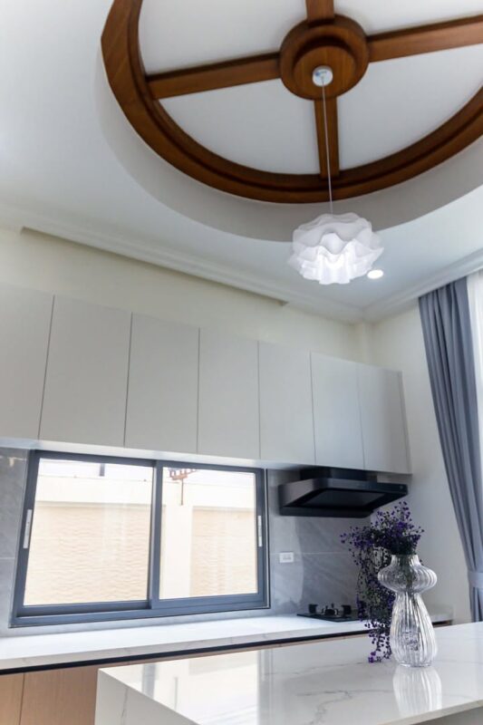 The interior design focuses on high ceilings, giving the house a spacious and airy feel. Large open spaces enhance natural light and ventilation, making the home comfortable and inviting.