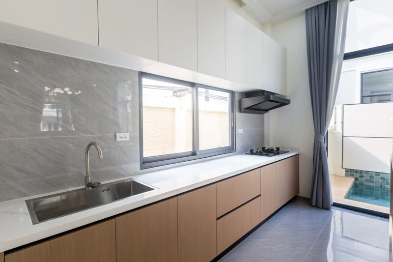 The villa sits on a land size of 53.75 square wah with a usable area of 220 square meters. It features 4 bedrooms, 3 bathrooms, and an additional maid’s room, providing ample space for family living. The layout is designed for comfort and functionality, suitable for modern lifestyles.