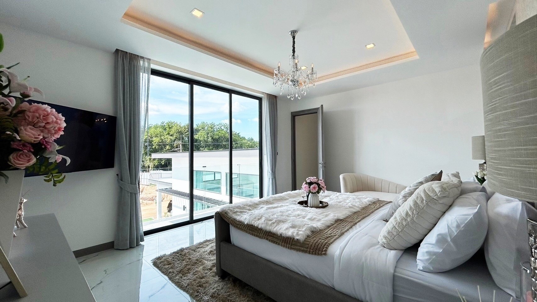 Location: JomtienType: CondoFurnishing: Fully FurnishedView Property1182 SqmElegant 4-Bedroom Pool Villa – Fully Furnished | Sauna, Fitness Room, and Private Parking | Near Pattaya & Jomtien